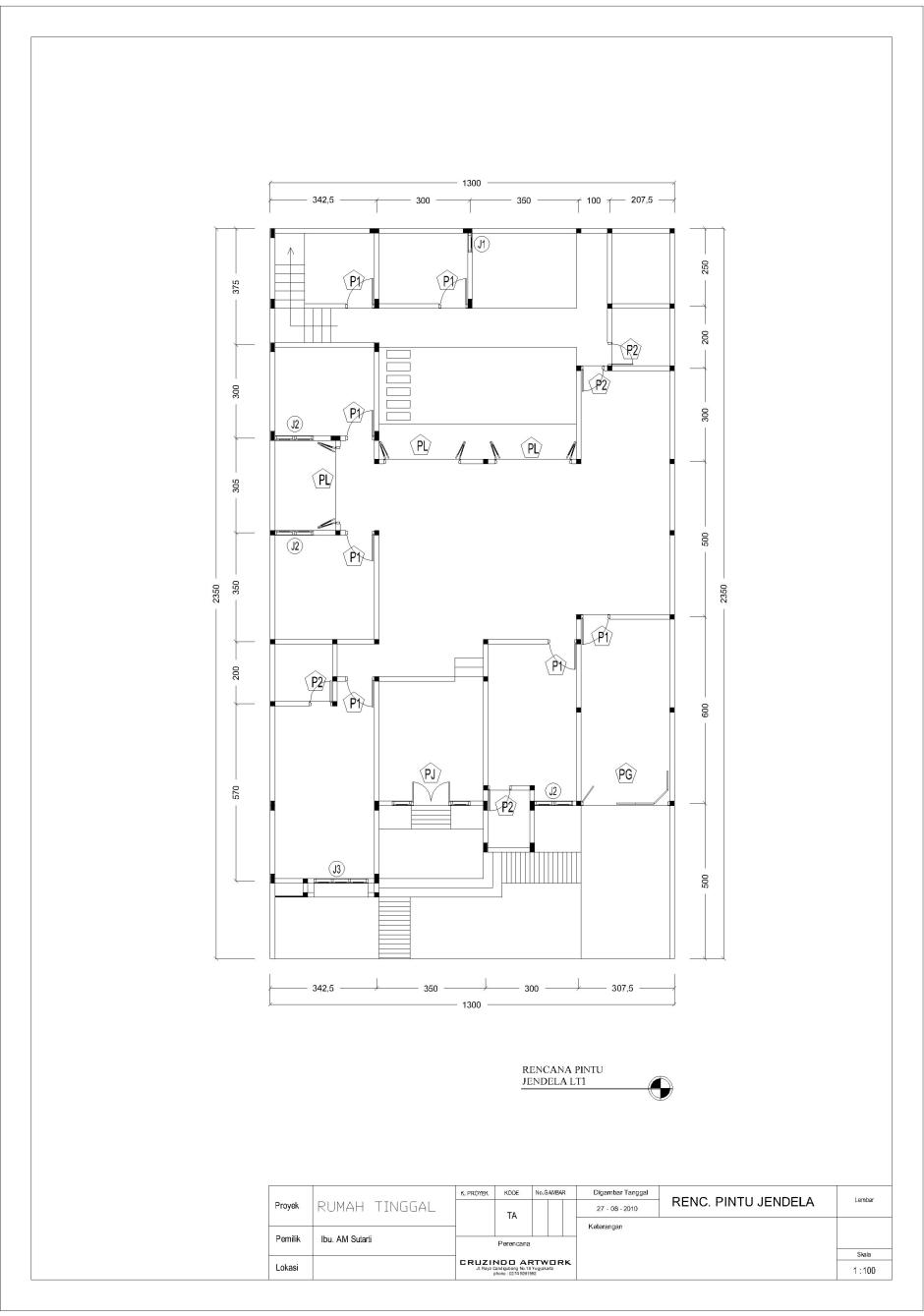Yaitu gambar rencana peletakan posisi pintu dan jendela di setiap ruangan. Peletakan pintu dan jendela disertai dengan detail keterangan mengenai ukuran tinggi-lebar-tebal (baik kusen dan daun), bahan yang digunakan, finishing, dan peletakannya.
